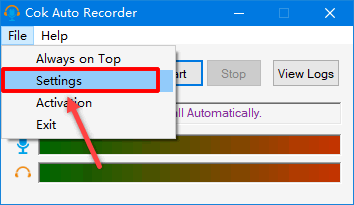 1. Download Cok Auto Recorder from the link above, run it and then click "File", "Settings" menu.
