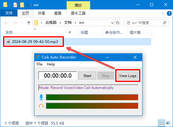 4. When you want to replay the meeting content, simply click the "View Logs" button to find the previously recorded audio files. The MP3 audio files are named after the date and time they started recording.