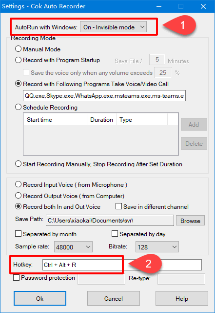 5. In addition, if necessary, we can also set the software to run in invisible mode. This way, the software will automatically start in the background when the computer is turned on and record the meeting content of Teams and Zoom software. The software will not display any running windows or icons, and we can focus on the call content without paying attention to the recording software. That is to say, the software can hide and record meeting content without the computer user's knowledge. In order to avoid violating laws and regulations, you need to inform the computer user in advance that you have installed automatic recording software on this computer.